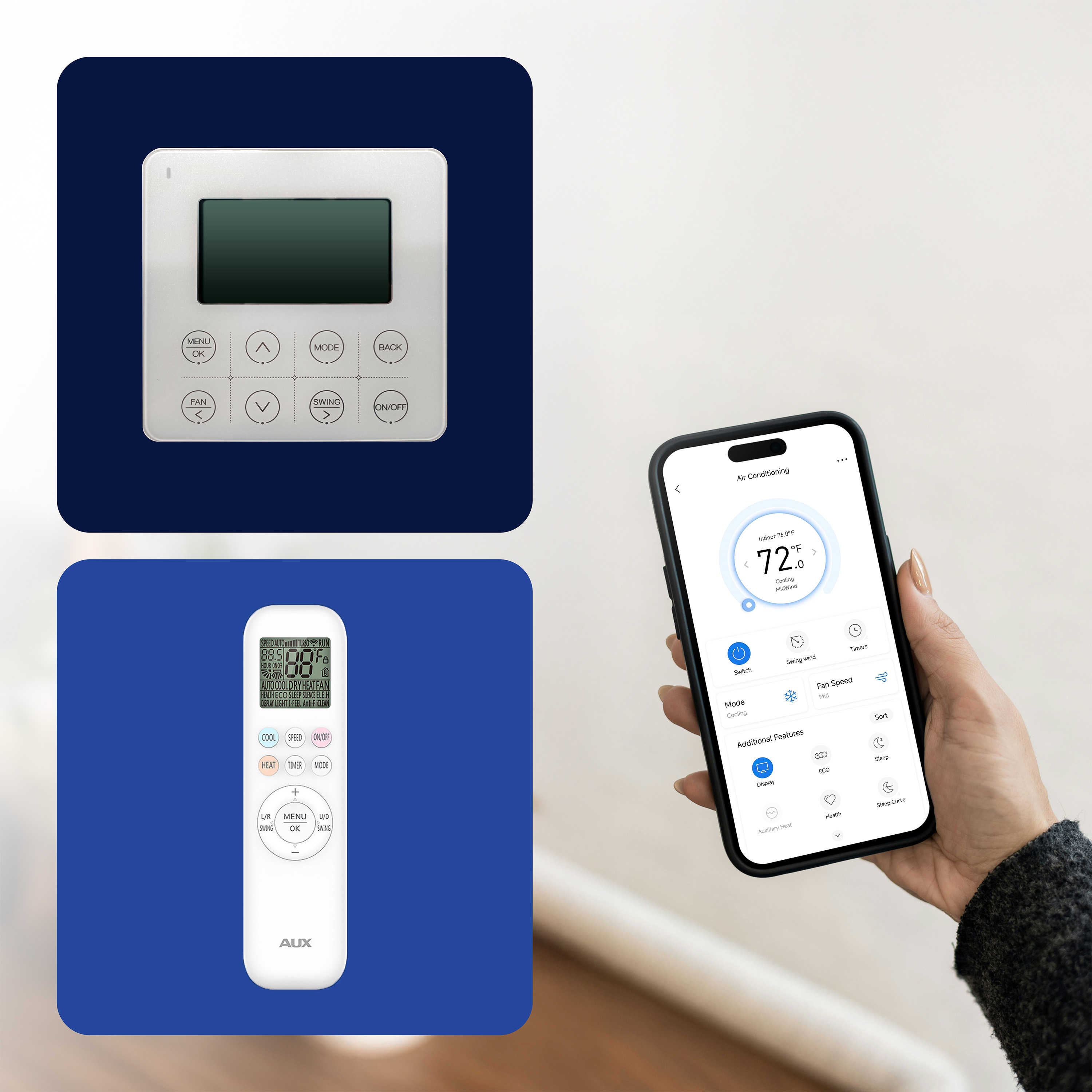 The AUX app allows for seamless remote control of the unit from anywhere in your home.